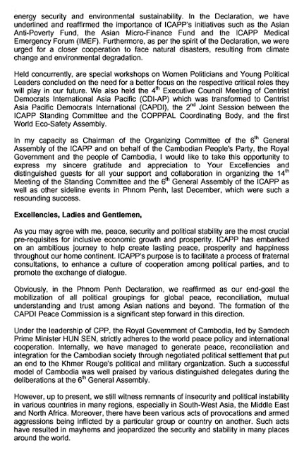 AKP Phnom Penh, May 6, 2011 — The International Conference of Asian Political Parties (ICAPP) has issued a statement, expressing its concern on the situation that has risen on the border between Cambodia and Thailand.